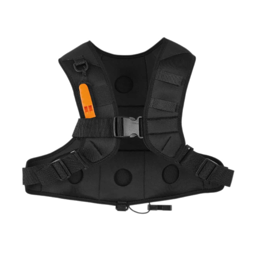 Il est équipé aux bretelles, d’un sifflet et de deux bandes velcro, permettant l’installation d’un couteau de secours.