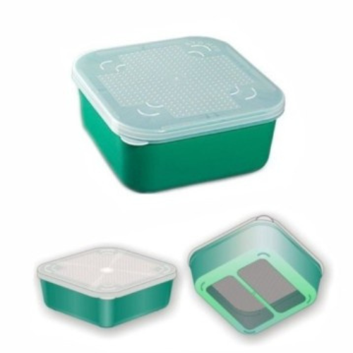 La boîte à leurres carrée Stonfo 1,2 litre est équipée d’un couvercle perforé et d’un fond en filet. Idéal pour Asticot.
