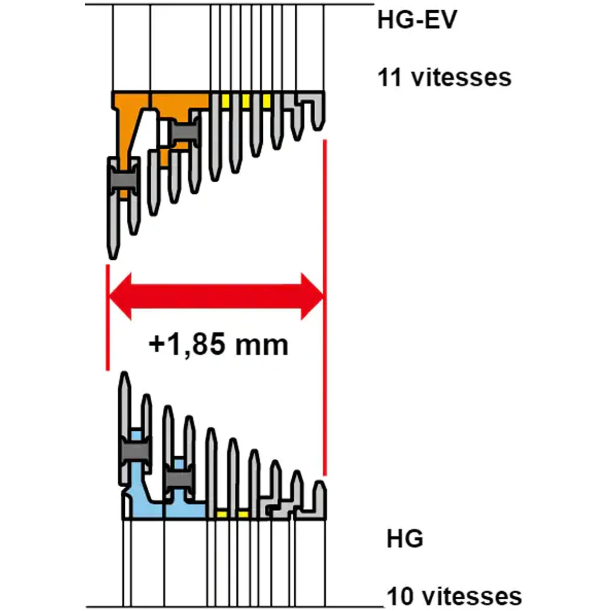 NB : La cassette Shimano Ultegra 11v CS-R8000 11-32 et 11-34 sont seulement compatibles avec un dérailleur chape longue.