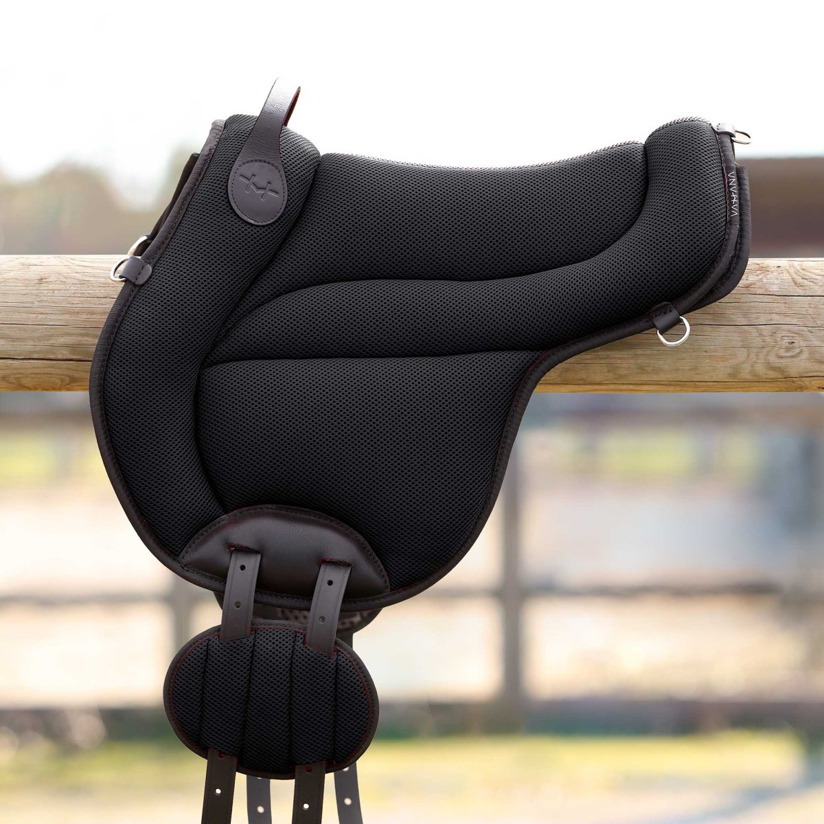 - Coupe anatomique et matériaux souples s’adaptant au dos du poney, quelle que soit sa conformation