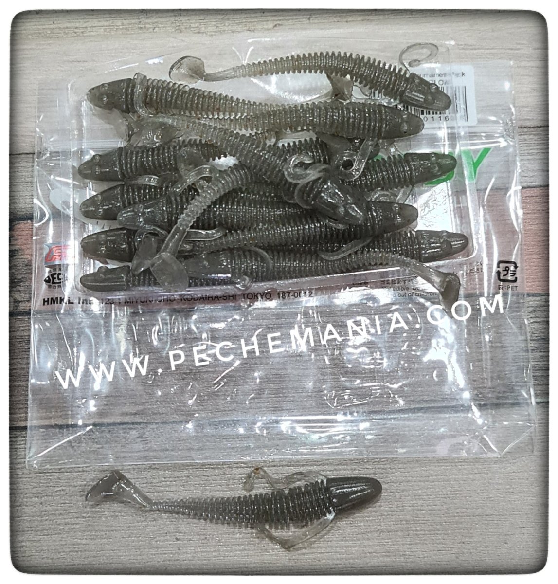 Les fines côtes gravées sur le corps ainsi que les grandes nageoires et la queue agrippent bien l’eau, lui permettant de se déplacer délicatement en réponse aux plus légers courants d’eau. De plus, la flottabilité élevée créée par le matériau non salin et la posture de nage stable créée par sa forme plate le rendent idéal pour les situations où vous souhaitez attirer les poissons lentement ou lorsque vous souhaitez explorer une vaste zone pendant une longue période. De plus, il contient une formule en poudre qui reproduit l’odeur de l’appât, faisant appel à l’odorat du bar.