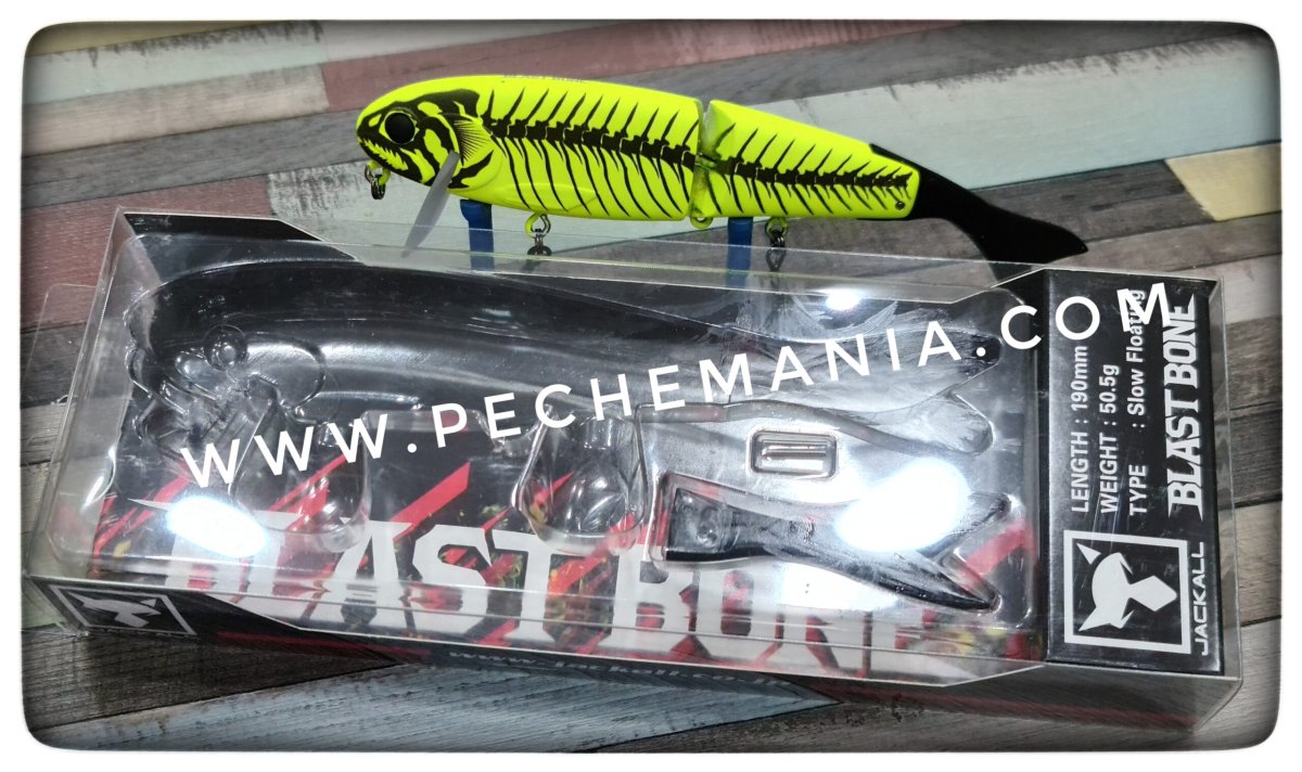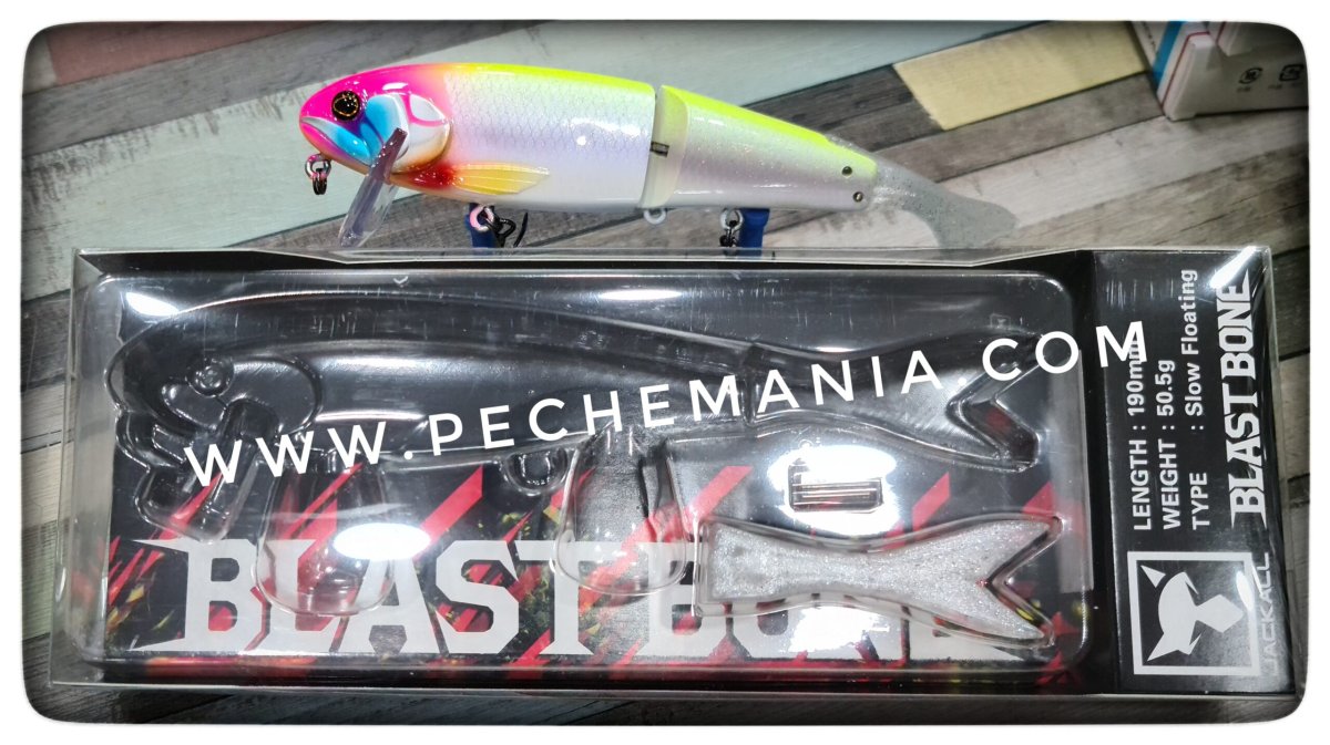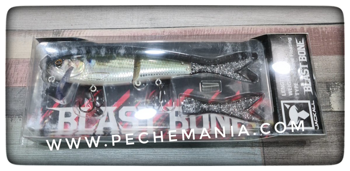 Jackall BLAST BONE SF is designed as a technical bigbait used around the structure and cover. The combination of Flat body and flat soft tail makes the strong water voltex to appeal the big fish around. And, special joint with widely movable range added the rolling action onto the wobbling action, that brings the flickering effect to bring fish bites. BLAST BONE Jr is the down sized model to match the bait and to work under the spooky condition.