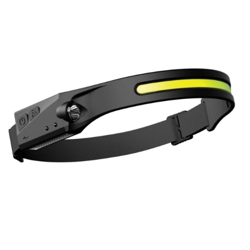 La lampe frontale a l’option de contrôle de mouvement. Lorsque la lumière est allumée, vous pouvez appuyer sur le bouton du capteur pour allumer et éteindre la lumière en agitant votre main devant le capteur de mouvement. Le capteur de mouvement est situé à côté du bouton du capteur sur le côté droit.
