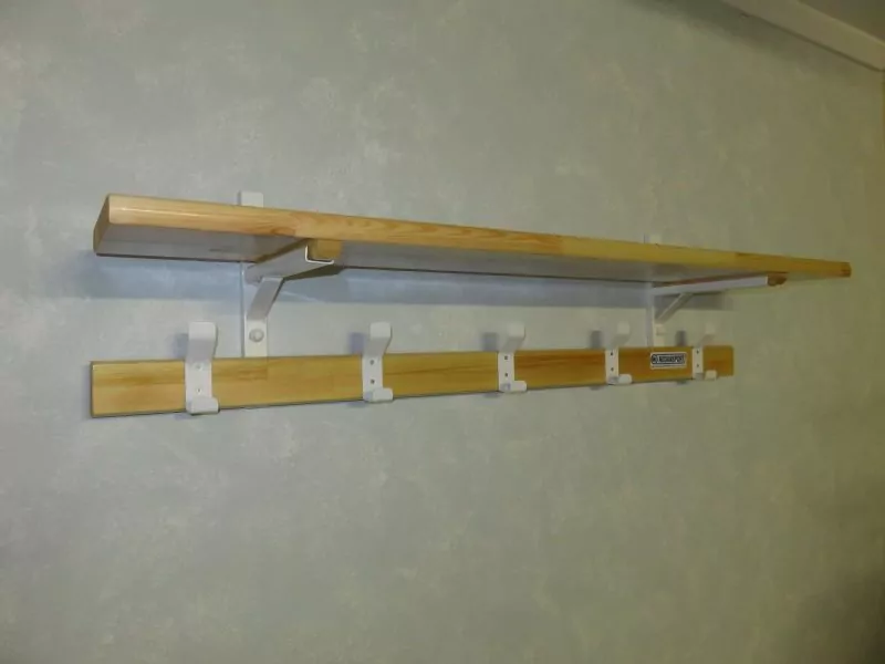 Porte paquet et lisse patères en sapin lamellé collé, vernis 2 couches, avec bi-patères en acier embouti (3 bi-patères au mètre), plastifiées blanc. Garanties indéformables. Fabrication à la demande. Unité de vente : le mètre linéaire