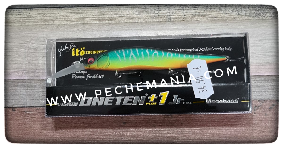 Le VISION ONETEN+1 Jr. Jerkbait amène l’irrésistible action de darting du Oneten à de nouvelles profondeurs.Le Oneten +1 Jr est un outil très efficace pour attaquer la plage de profondeur entre 1.80m et 3m. Aucun détail n’a été épargné. Dès le premier twitch, le Jr. affiche la même action dynamique inégalée qui a catapulté la série ONETEN au premier rang des pêcheurs de jerkbaits. Le Vision ONETEN+1 Jr. offre une action de secousse hypnotique et imprévisible. Lorsqu’il est récupéré en linéaire, il présente un rolling élevé et des flashs séduisants. Il est doté d’un système de lest mobile en tungstène, pour gagner en distance de lancé.