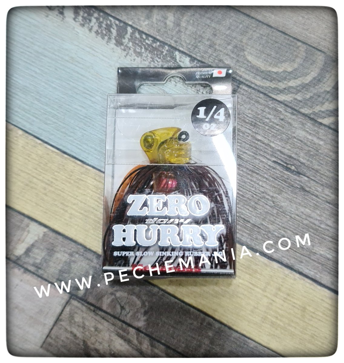 Le Zero Hurry est un rubber jig doté d’une tête en résine creuse. Il en résulte un jig de forme classique mais avec une vitesse de descente extrêmement lente. Ce jig est très intéressant pour attiser la curiosité des black bass.