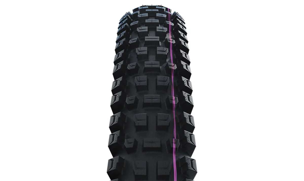 Vous pouvez retrouver ce pneu Schwalbe Albert Trail Pro Addix Ultra-Soft en 29” et en 27,5”, en section 2,50. Ces pneus possédant la carcasse Radiale, il est conseillé de rouler avec les pressions habituelles. Vous pourrez avoir 30 % de surface de contact au sol en plus qu’avec un pneu en construction diagonale, pour la même pression de gonflage. Même en augmentant votre pression de gonflage de 50 %, la surface d’appui reste supérieure de 15 %. Cette carcasse spécifique permet aussi de remettre un peu de pression sur les terrains très cassants, sans pour autant altérer les performances du pneu.
