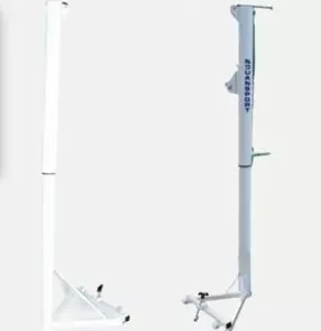 Poteaux de compétitions régionales dans fourreaux, conformes à la réglementation fédérale, en acier peint aux poudres polyester époxy.