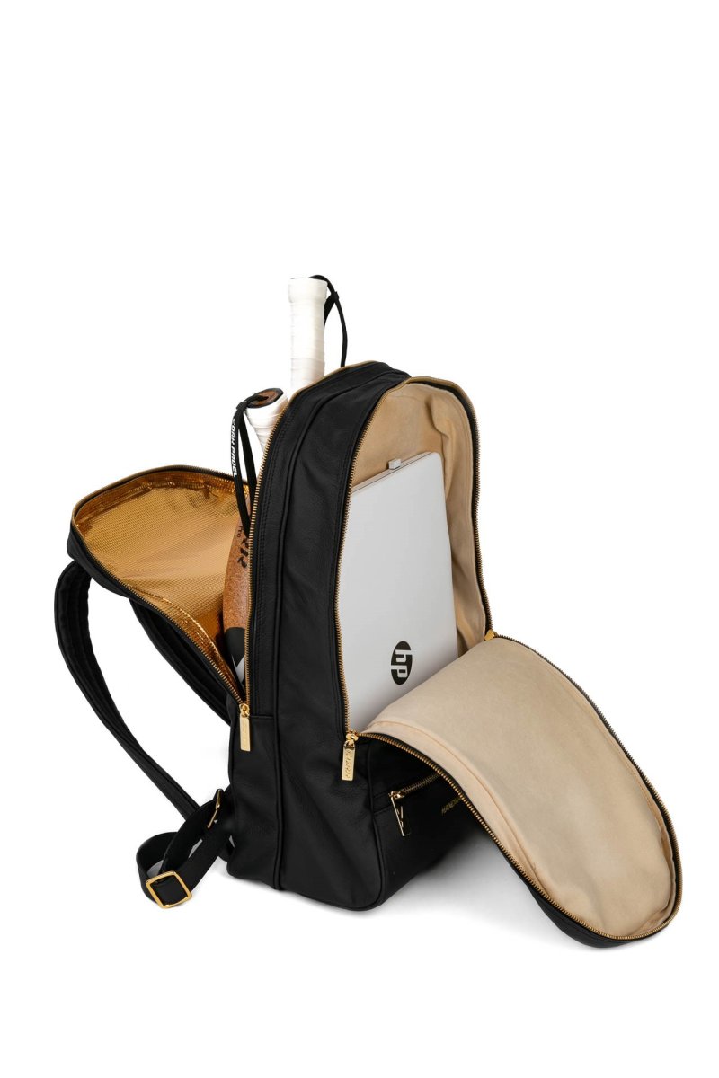 Sac à dos réalisé à la main en cuir véritable, avec la marque CORK PADEL brodée ou gravée.