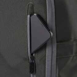 Le compartiment principal est divisé pour faciliter le rangement d’un ordinateur portable et d’autres objets, tandis qu’une poche ventilée vous permet de séparer vos effets personnels du reste du contenu du sac. Vous pouvez ranger votre téléphone dans une poche étanche.