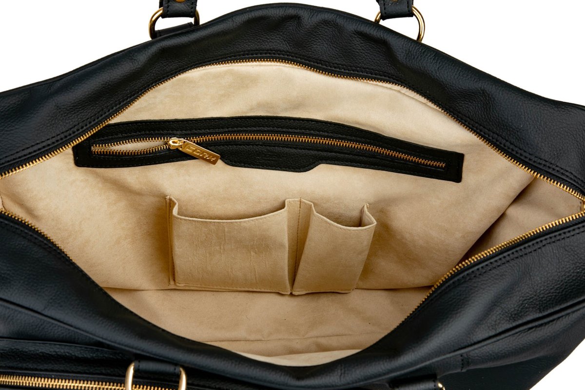 Poche intérieure zippée, avec une poche fermée et deux poches ouvertes.