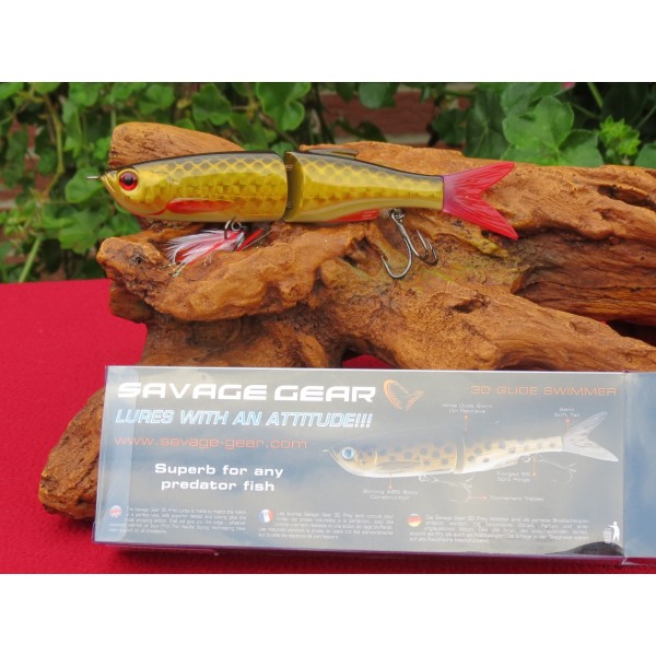 leurre SAVAGE GEAR 3D BLEAK GLIDE SWIMMER – 16.5CM-49 grs ref 48584 slow slink L’Ablette (Bleak en anglais) est une des proies préférées de la plupart des carnassiers. L’articulation en V à débattement restreint et la forme unique du corps donnent une action de nage planante irrésistible. Larges oscillations latérales en récupération continue et flashes ventraux aléatoires lors des jerks. C’est un leurre facile à utiliser, aussi bien en spinning qu’en casting. L’action de nage mêlant swimbait et jerkbait, développée jusqu’à la perfection, fait attaquer encore et encore même les carnassiers les plus méfiants. • Nage en S large en récupération continue 3D Technology : |
