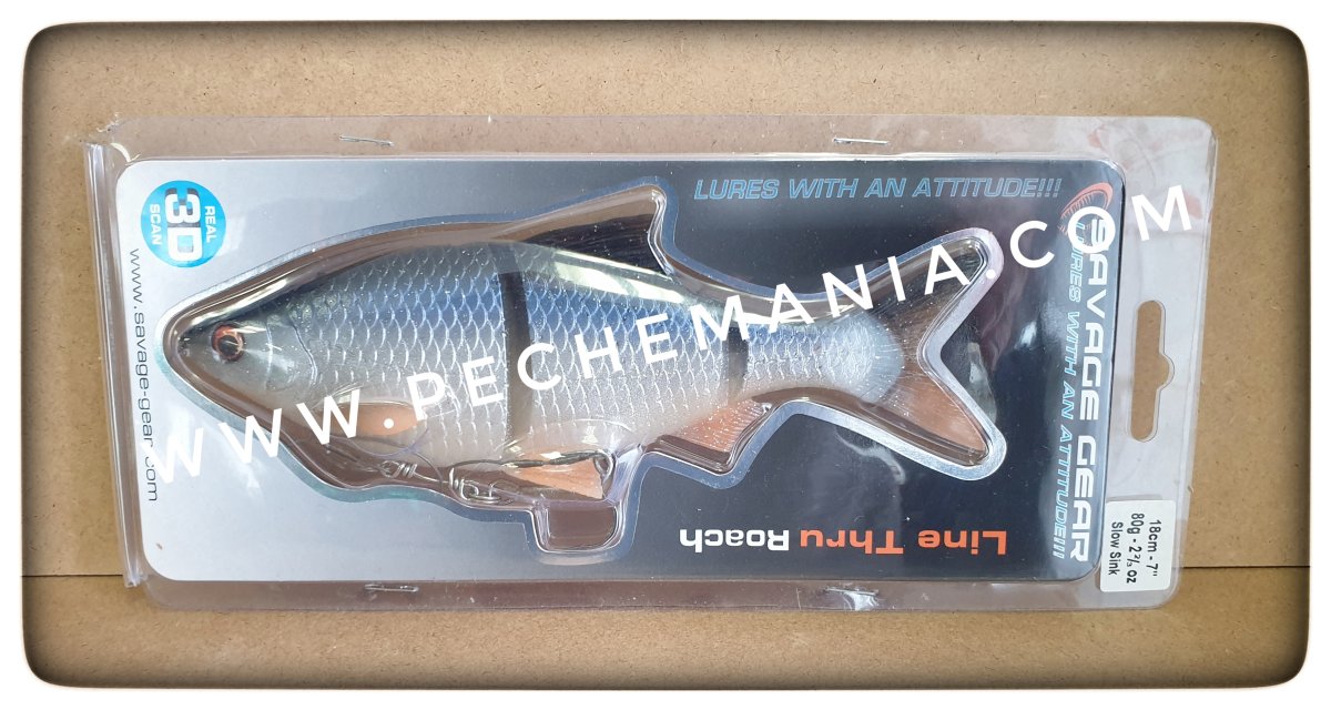 La gamme Savage Gear 3D Roach est basée sur un scan 3D d’un vrai gardon et vous surprendra par son réalisme et son incroyable action de nage ! Le Line Thru Roach est vraiment une superbe imitation du gardon, qui ressemble et nage comme l’original. Notre fameux système Line Thru, développé les années précédentes, garantit les meilleurs chances de ferrage et procure moins de ratés à la touche. De plus, vous pouvez désormais changer l’armement pour deux triples. Son profil haut offre la meilleure silhouette et un S-action redoutable, et lors des stops le leurre se retourne, rendant fou les carnassiers ! La version slow sinking peut être plus facilement twitchée pour rester plus longtemps sur le poste, tandis que la version moderate sink coule très vite, avec une action en S très large, qui brasse beaucoup d’eau et attire les brochets de très loin !