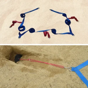 TRACÉ DE BADMINTON EXTÉRIEUR SUR SABLE ET SON DISPOSITIF DE MAINTIEN – COMPÉTITION